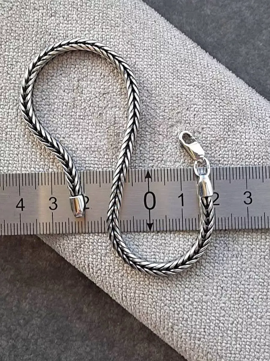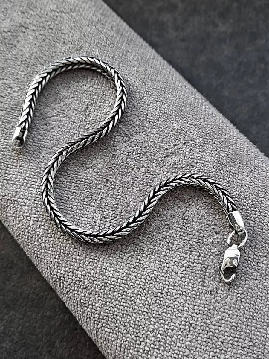 Все изделия от идеи до их воплощения мы разрабатываем сами, вкладывая частичку души в каждое свое изделие. Представляем вашему вниманию оригинальный браслет из серебра 925 пробы. Оксидирование. Цепочка на руку мужская очень плотная, изготовлена из серебряной цельнотянутой проволоки 925 пробы. Браслет тактильно очень приятный, имеет сложное многожильное соединение звеньев, собранных в характерную дорожку, Диаметр браслета 4 мм. Такое плотное и многожильное плетение пользуется популярностью, как у мужчин, так и у женщин, благодаря своей надежности и подлинной долговечности. Браслет подойдет и для мужчин и для женщин, его можно носить как самостоятельное украшение или комбинировать с другими аксессуарами - часами или браслетами. Такой брутальный мужской браслет можно вручить как оригинальный подарок на день рождения, годовщину, новый год, 14 и 23 февраля для мужчины, мужа, парня, близкого человека. Классический браслет отлично подойдет под и под строгий и под спортивный образ, а также для повседневной носки. Модный и стильный браслет станет хорошим и надежным талисманом. Возможно Вы искали: плетеный браслет, оригинальный браслет, браслет из серебра, браслет под шармы, браслет серебро оригинального плетения. Браслет под шармы поставляется с подарочным мешочком.