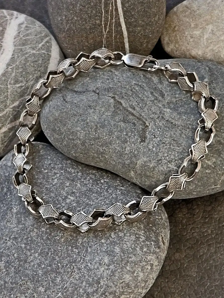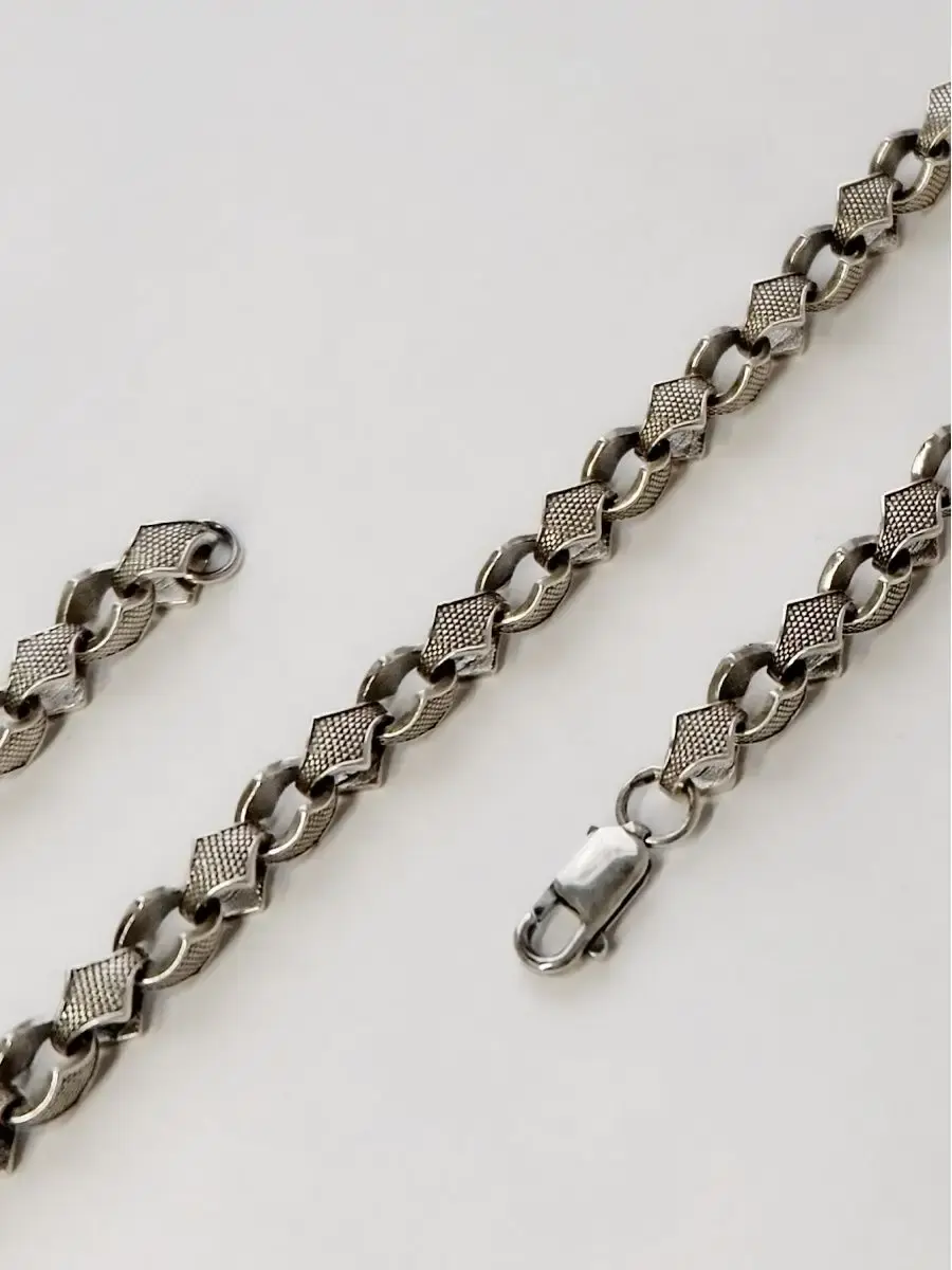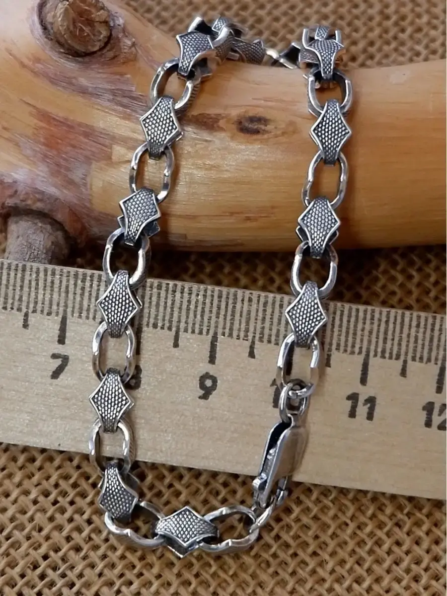 Идеально смотрится на мощной мужской руке. Фактурная поверхность звеньев этой литой цепи, имитирует "капюшон" кобры. А чернение поверхности усиливает эффект.