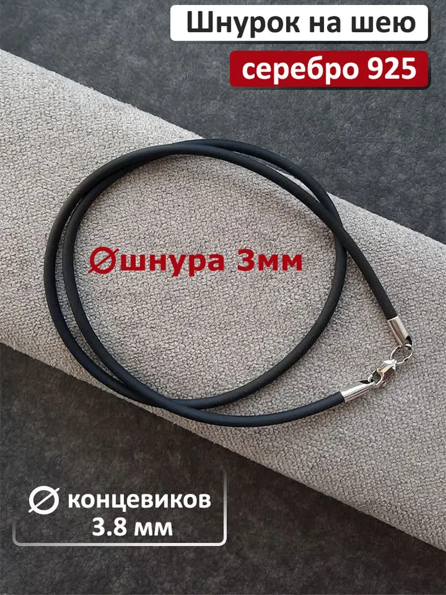 Ювелирный шнур-гайтан SILVERMEN из серебра 925 пробы станет отличной основой к кресту, подвеске или оберегу. Изготовленный из высококачественного серебра, он отличается прочностью и долговечностью. Удобный карабин позволяет легко закрепить подвеску, а элегантный каучуковый матовый шнур подчеркнет вашу индивидуальность. Этот шнур-гайтан станет прекрасным выбором для повседневной носки или для создания стильного образа на особый случай. Диаметр шнурка 3 мм