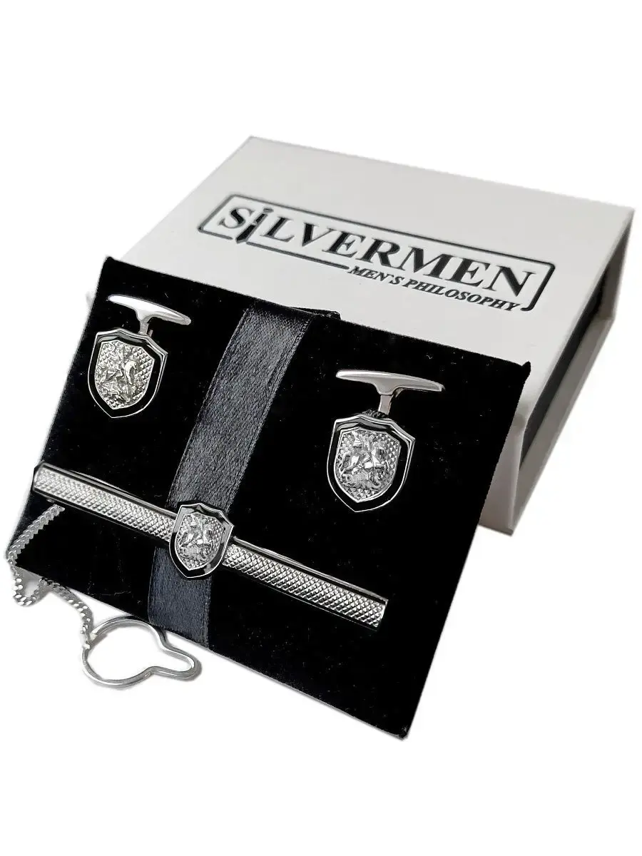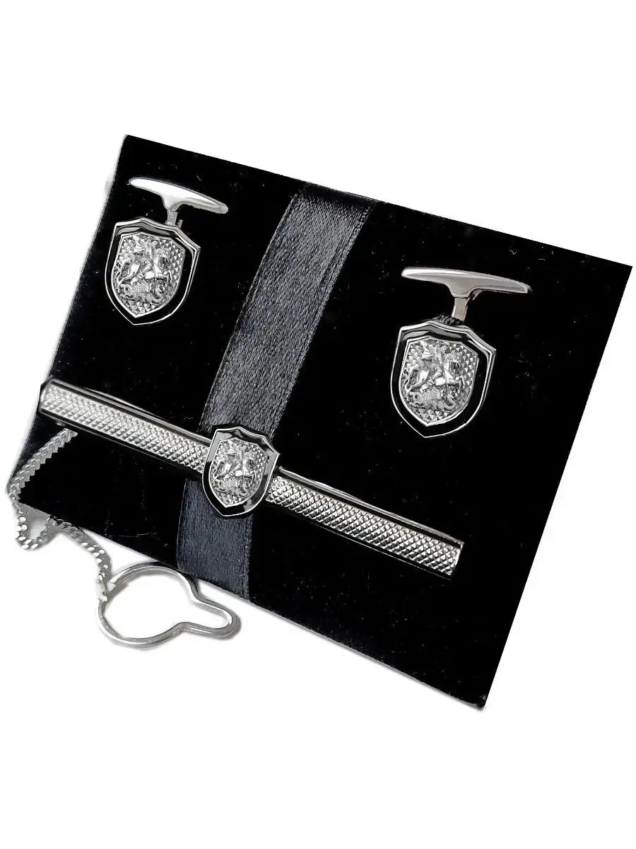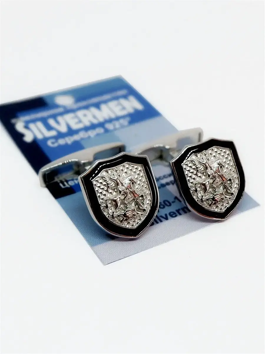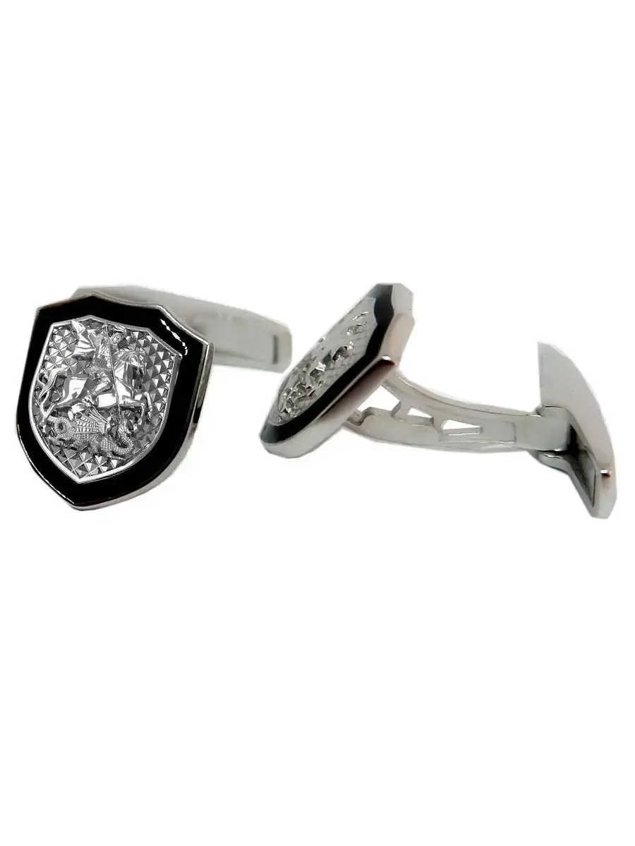 Образ Георгия на коне, поражающего копьем змея - иконография, знакомая каждому русскому человеку. Именно в этом изображении Георгий стал именоваться Победоносцем и был помещен на герб России и на этот подарочный комплект. Такой набор (запонки+зажим для галстука) будет хорошим подарком для военнослужащих. К тому же Вам не придется искать упаковку, так как в подарок идет элегантный брендированный футляр. Размер лицевой части запонок: 12х14мм. Вес: 5,6 грамма. Длина зажима: 60 мм, вес 5,5 грамма.