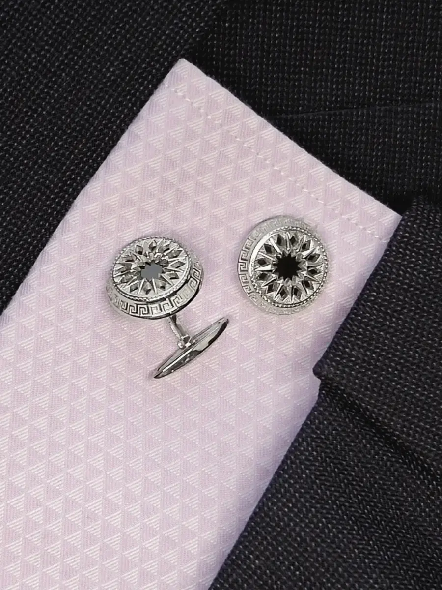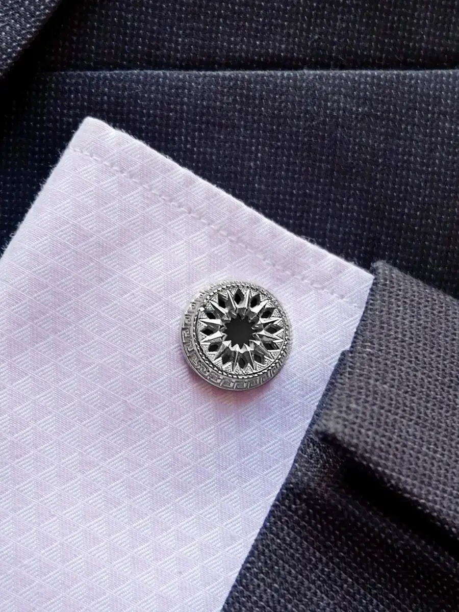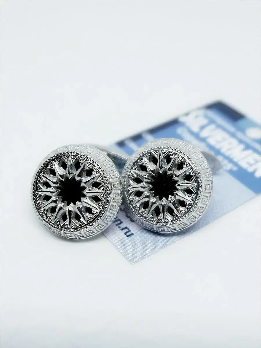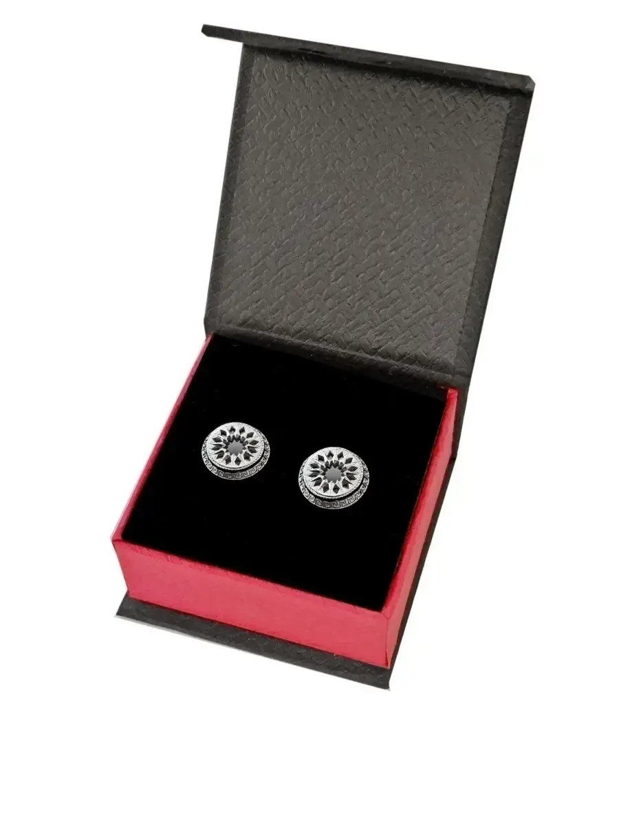 Классика круглых запонок. Диаметр 17 мм. Оригинальная закрепка камня. Поставляется в подарочной упаковке.