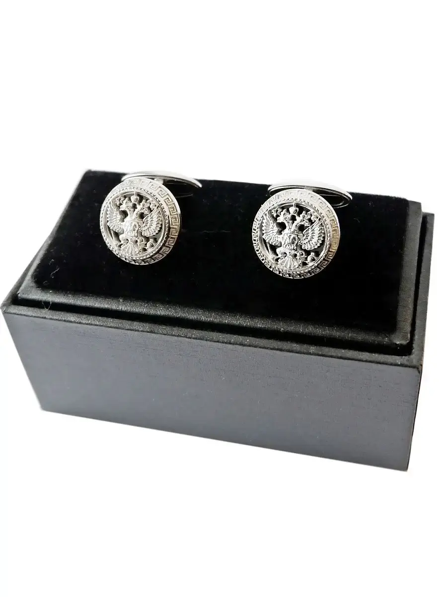 Круглые запонки из серебра 925 пробы. Диаметр 17мм. Каждое ювелирное украшение имеет именник производителя и клеймо, подтверждающее 925 пробу серебра.