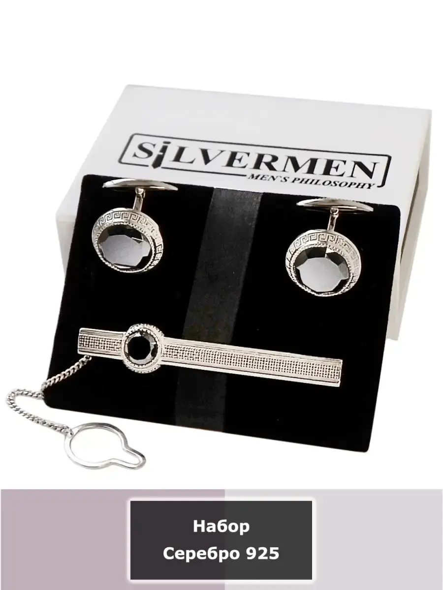 Один из самых крупных комплектов в ассортименте нашей компании. Средний вес комплекта из серебра 19,5-20 грамм! Запонки мужские. Серебро 925 пробы. Вес 12,4 грамма. Зажим для галстука. Серебро 925 пробы. Вес 7,3 грамма. Упакованные в футляр они образуют комплект из запонок и зажима для галстука. Такой комплект будет и хорошим подарочным набором и стильным мужским аксессуаром. Подходит для классического костюма делового человека. Обратите внимание: запонки достаточно крупные. Диаметр лицевой части запонок: 17 мм, вставка: фианит / синтетический оникс. Размер лицевой части зажима: 65х7мм. Чтобы надолго сохранить привлекательный вид украшений достаточно аккуратно носить и регулярно удалять загрязнения, протирать фланелевой салфеткой. Мужские запонки относятся к тем аксессуарам, которые никогда не теряют своей актуальности. Ювелирные украшения изготовлены из серебра 925 пробы. Украшения упакованы в футляр с магнитной защелкой. Запонки подойдут как для повседневного ношения, так и для торжества. Родиевое покрытие запонок предотвращает ювелирные украшения от потемнения и царапин.
