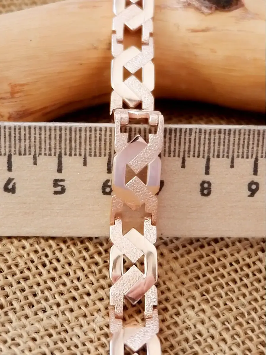 Серебряный браслет с золочением 585 пробы. Средний вес: 21 см - 23 грамма, Поставляется с подарочным футляром