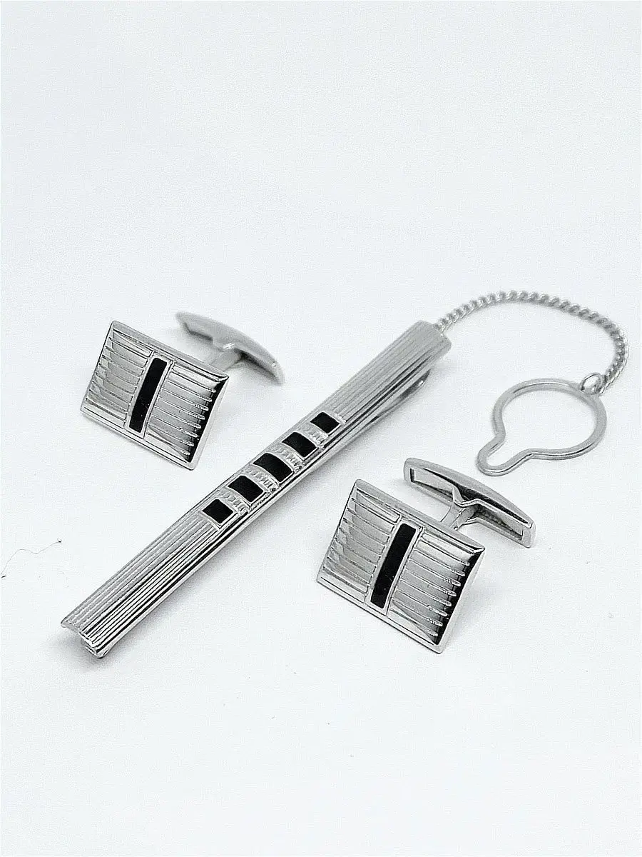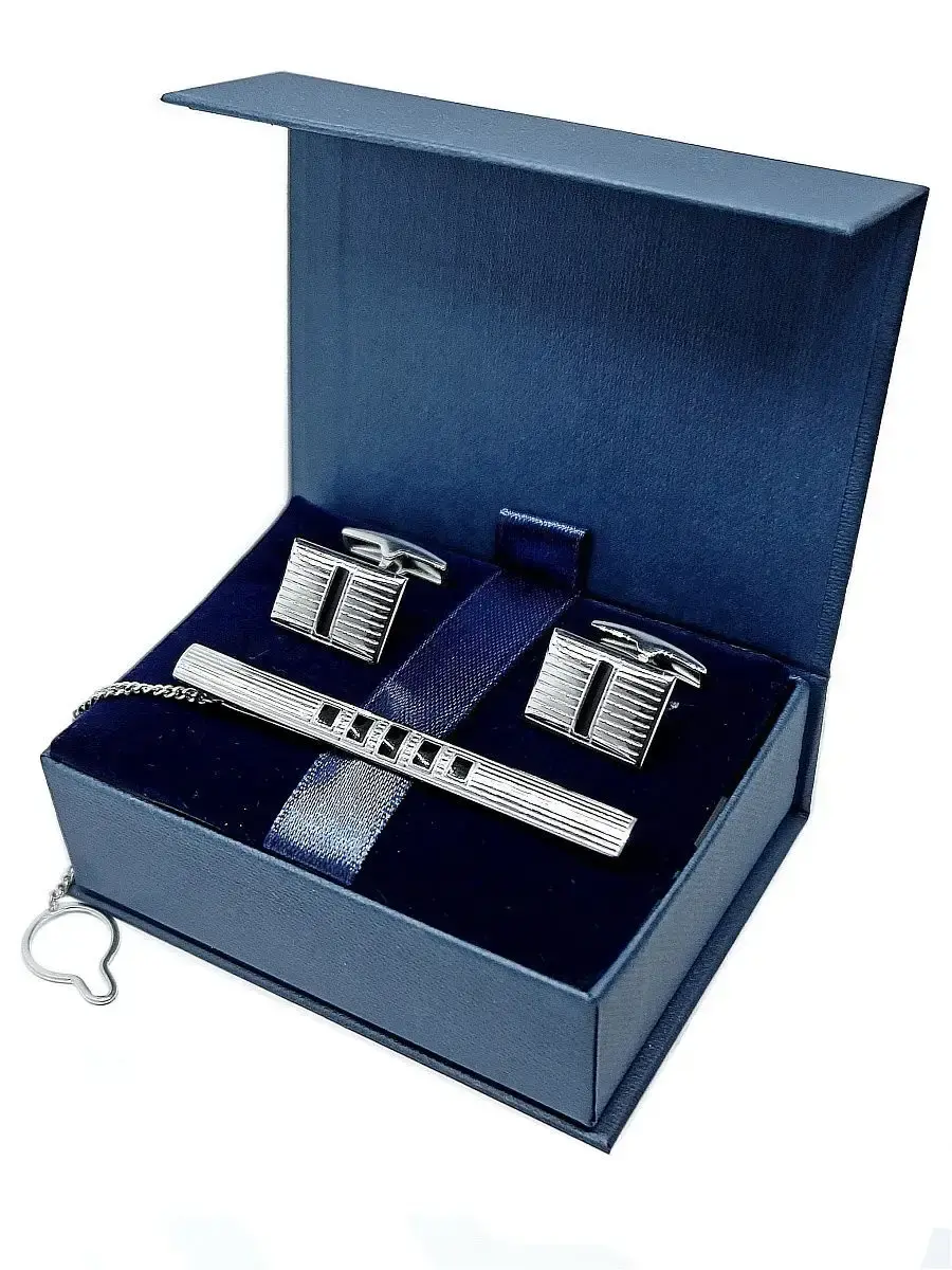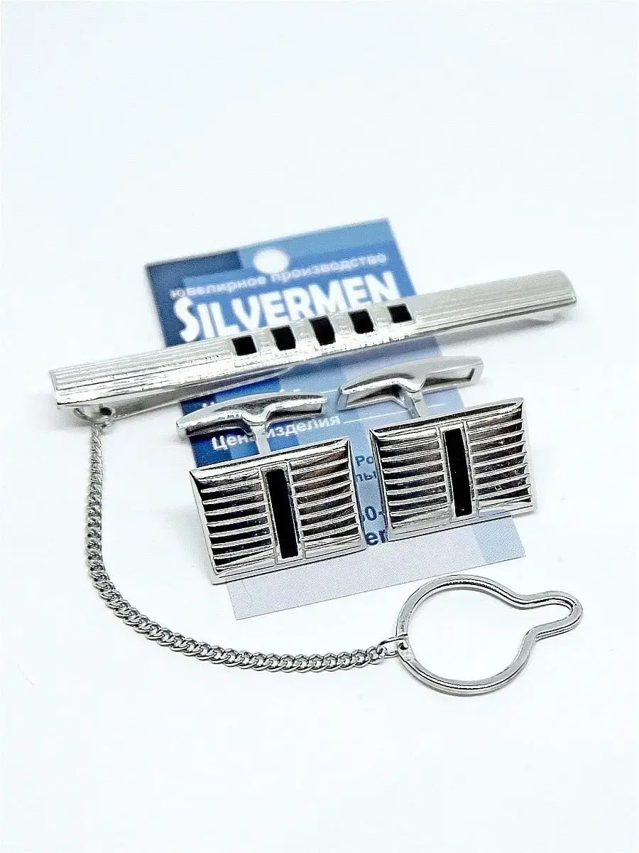 Эти запонки идеально подойдут руководителям среднего звена, а также поклонникам этой ушедшей эпохи. Идеальное дополнение любого делового костюма. Размер лицевой части зажима 64х7мм, размер лицевой части запонок 16х7мм, размер подарочной упаковки 75х55х28мм. Футляр под ювелирные украшения изготовлен из твердого картона с оклейкой и логотипом производителя.