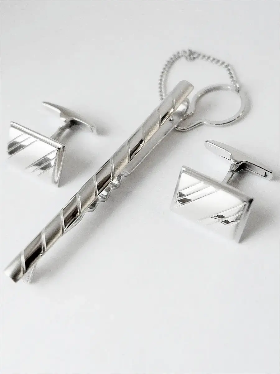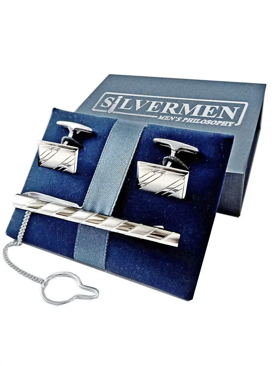 Подарочный комплект запонки и зажим для галстука из серебра 925 пробы в брендированном футляре. Идеальное дополнение любого делового костюма. Подходит для ежедневного использования. Длина зажима 60 мм, вес 5 грамм; размер лицевой части запонок 15х9мм, вес 6,5 грамма. Серебро 925 пробы. Каждое ювелирное украшение имеет именник производителя и клеймо, подтверждающее 925 пробу серебра. Размер подарочной упаковки 75х55х28мм. Футляр оснащен магнитным замком.