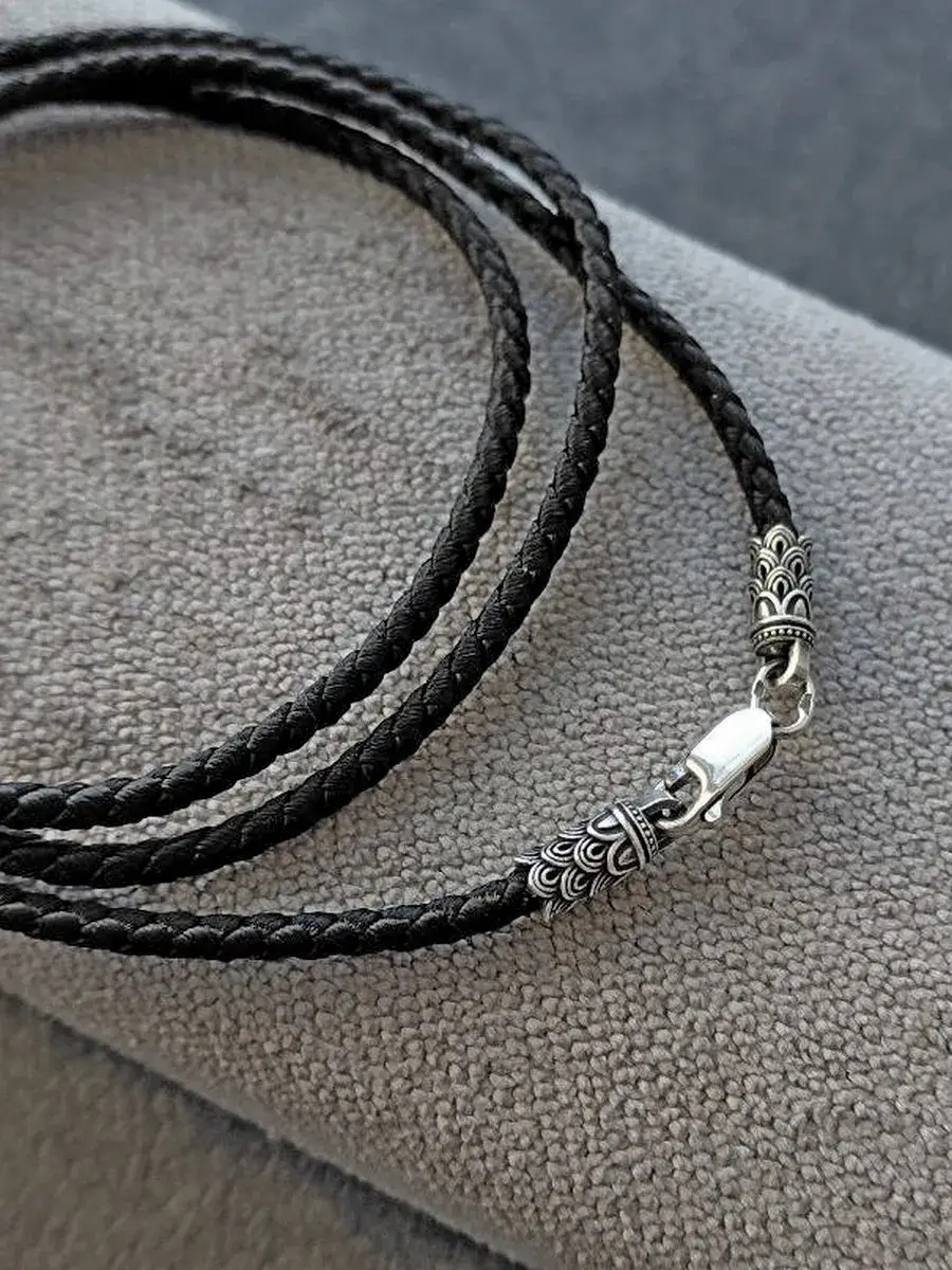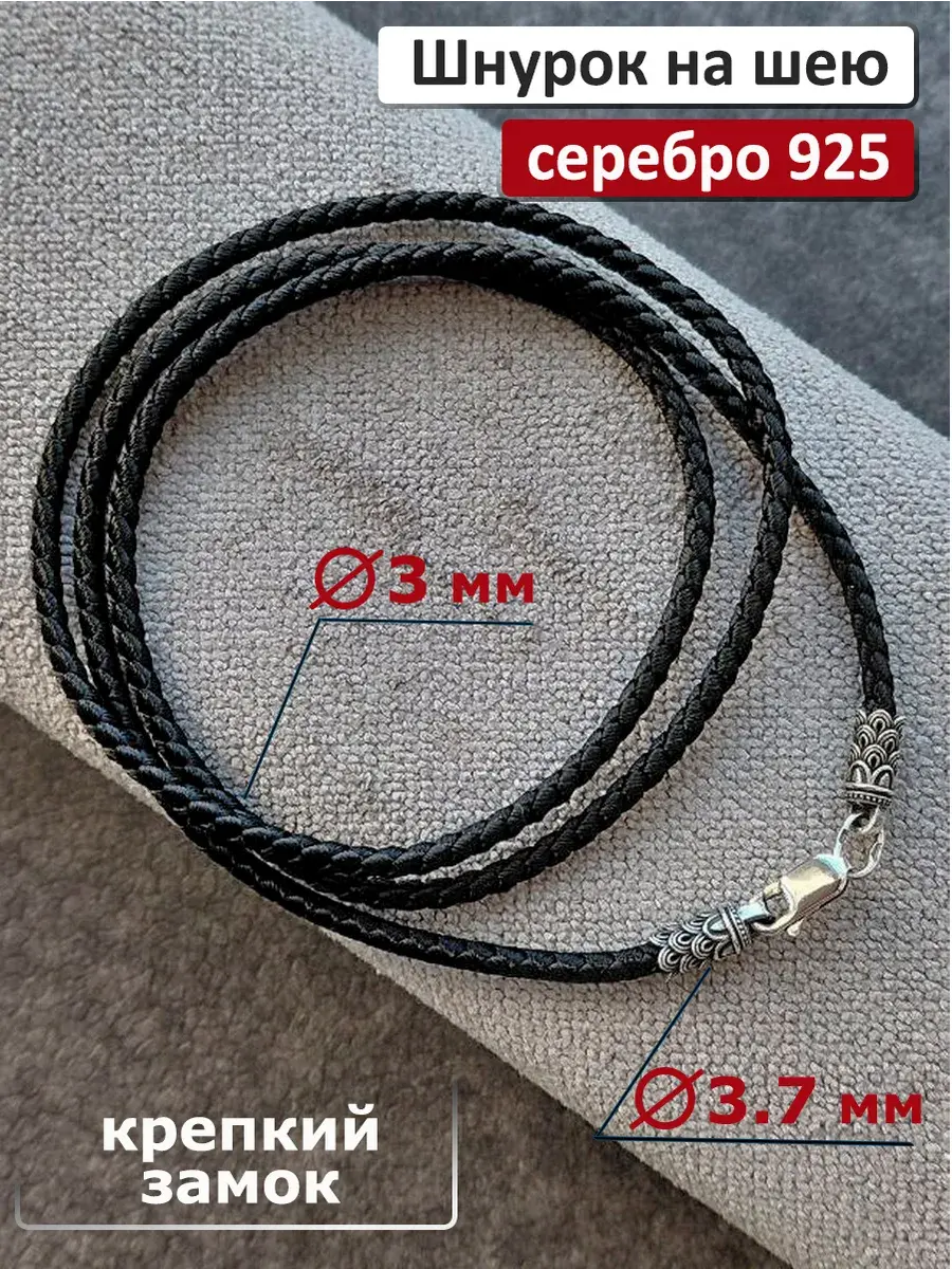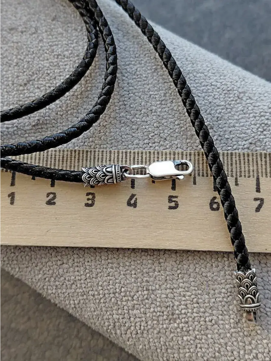 Универсальный ювелирный шнур с серебряными концевиками, который подойдет под 90% серебряных крестов и подвесок. Шнур тактильно приятный, не боится влаги и подходит для ежедневного ношения. Серебряные оконцовки частично оксидированы.