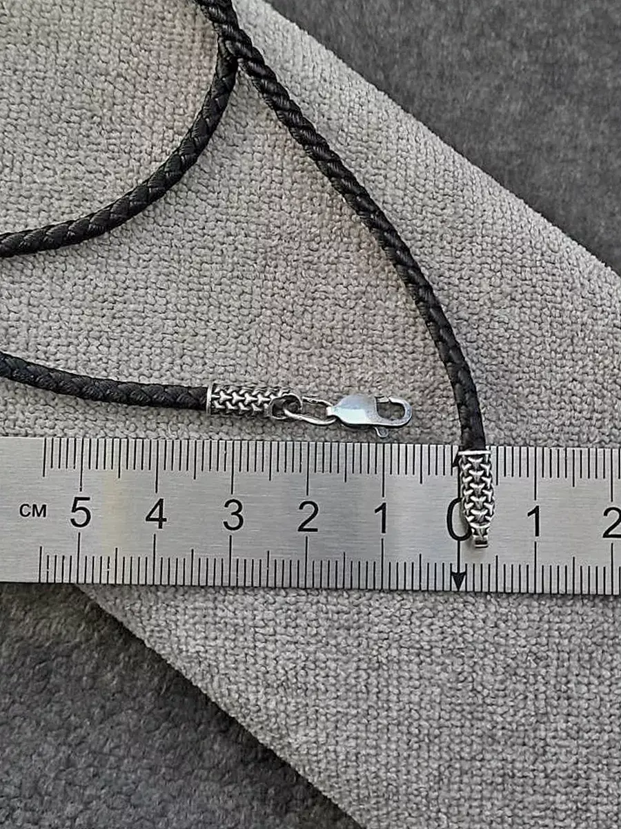 Особенностью шнурка является то, что серебряные концевики повторяют плетение шнурка и вместе образуют законченное ювелирное украшение. А сам наружный орнамент концевика плавно перетекает в проушину, образуя с ней единое целое.