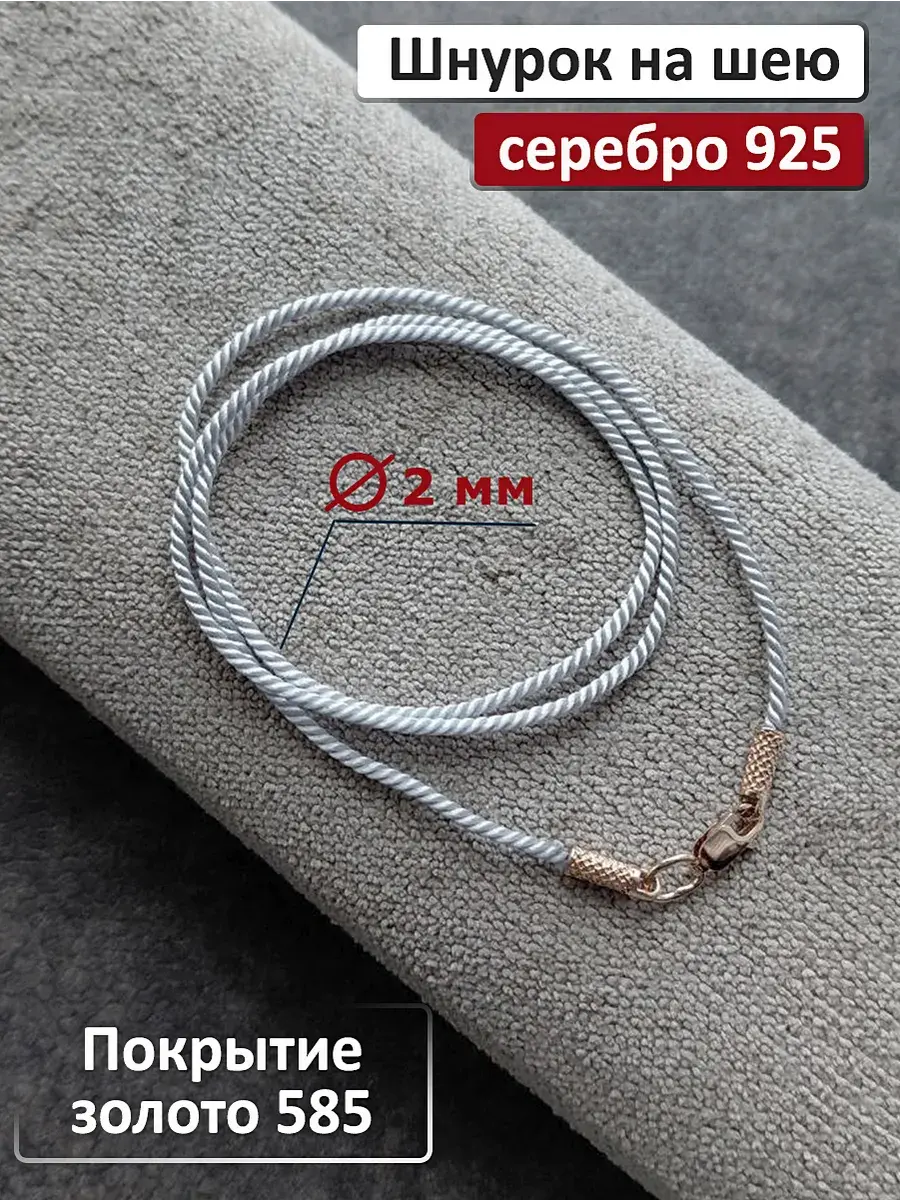 Шнурок тонкий, подойдет под практически любую подвеску или нательный крестик.
