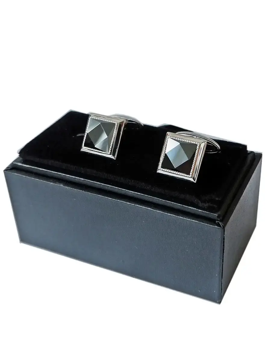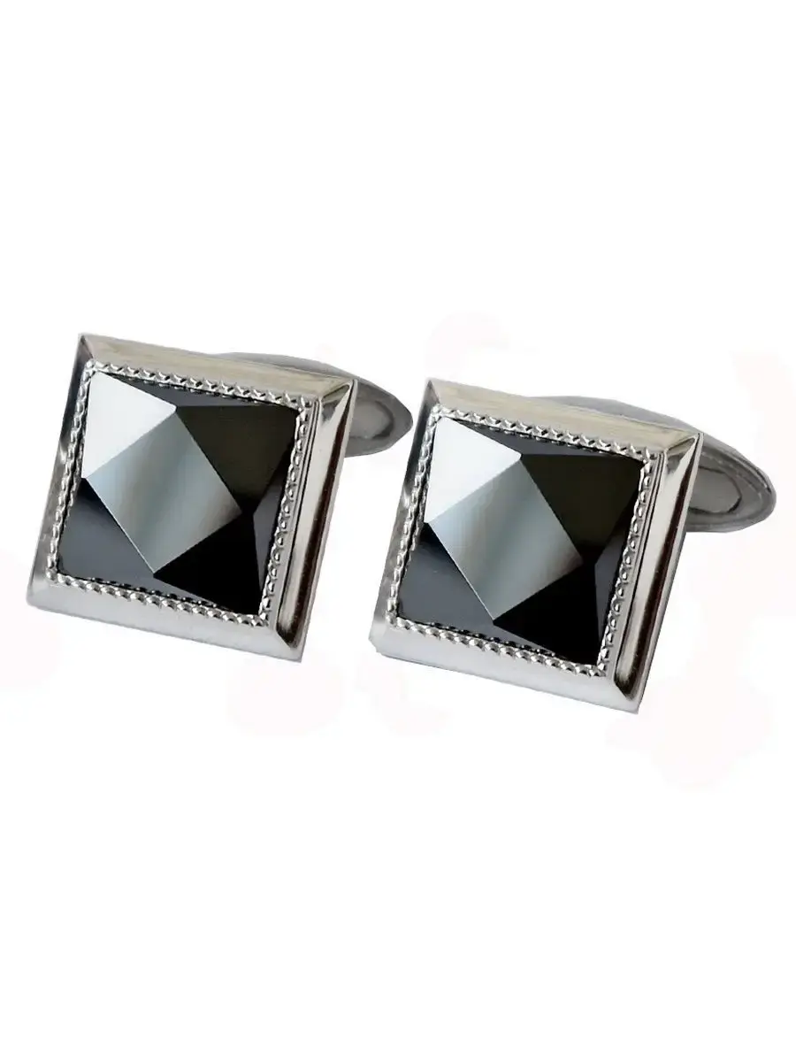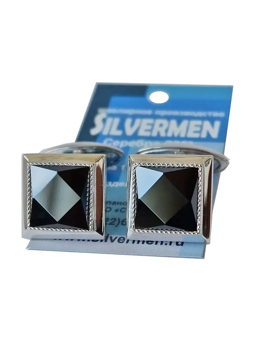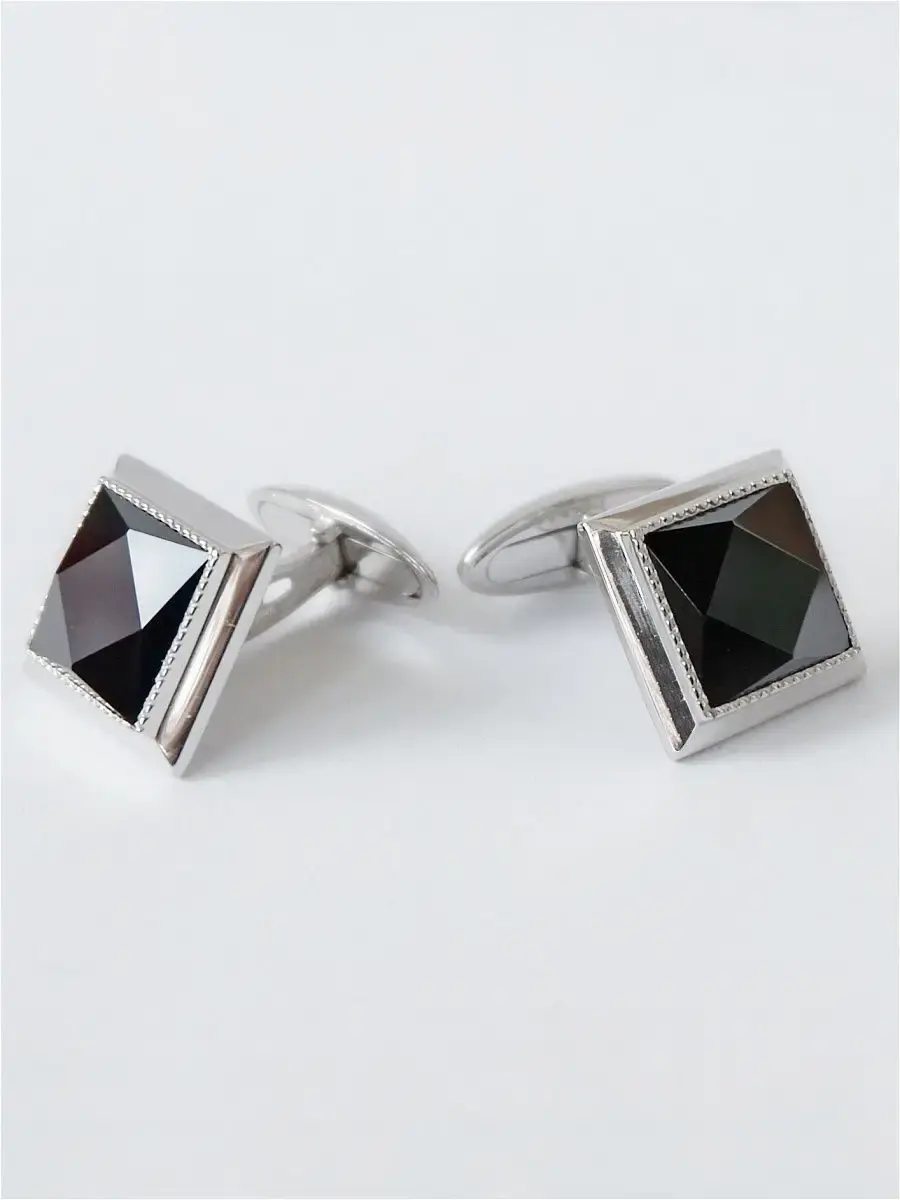 Классические квадратные запонки из серебра с фианитом фасетной огранки. Размер лицевой части запонок 15х15мм.