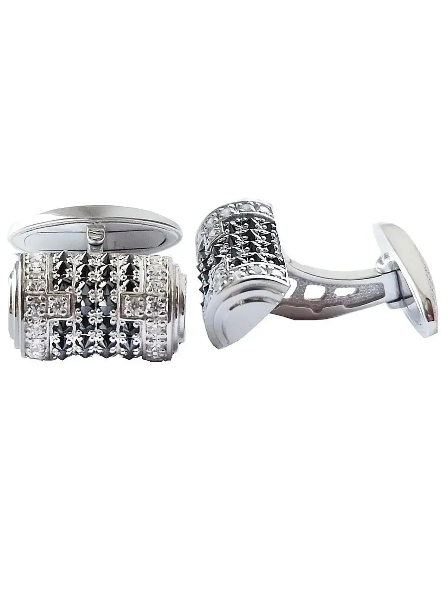 Запонки изготовлены из серебра 925 пробы, камни в запонках закреплены оригинальным образом, что придает им необычайный блеск и неповторимость. Покрытие - родий, вставка: фианиты. Изделие имеет отметки государственной инспекции пробирного надзора, подтверждающего 925 пробу серебра и клеймо-именник завода изготовителя. Поставляется в подарочном футляре.