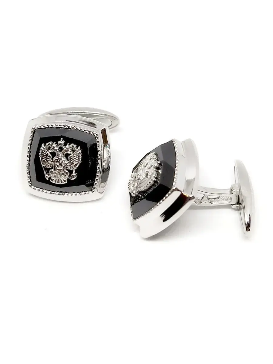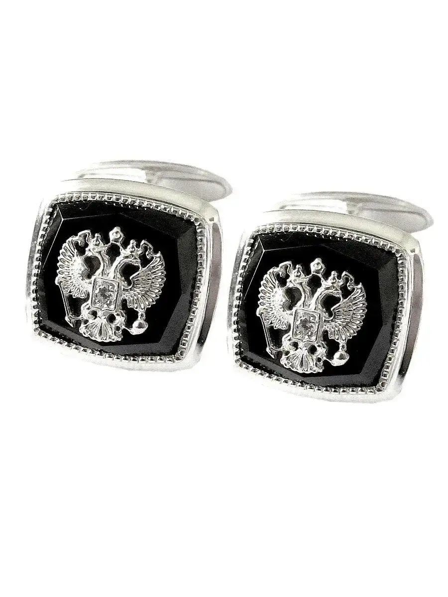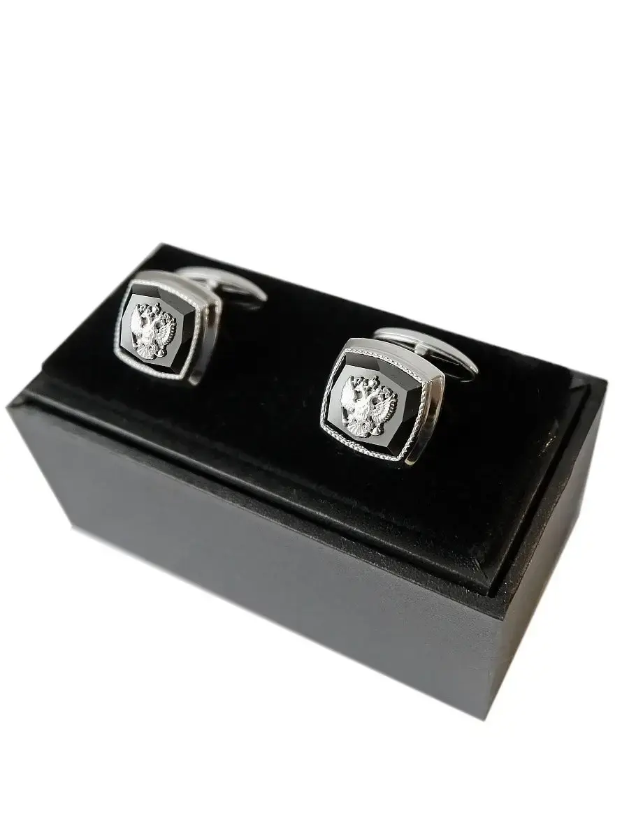 Запонки с двуглавым орлом в подарочной упаковке. Крупные. Двуглавый орел на камне закреплен штифтом и завальцован с обратной стороны (не выпадет).