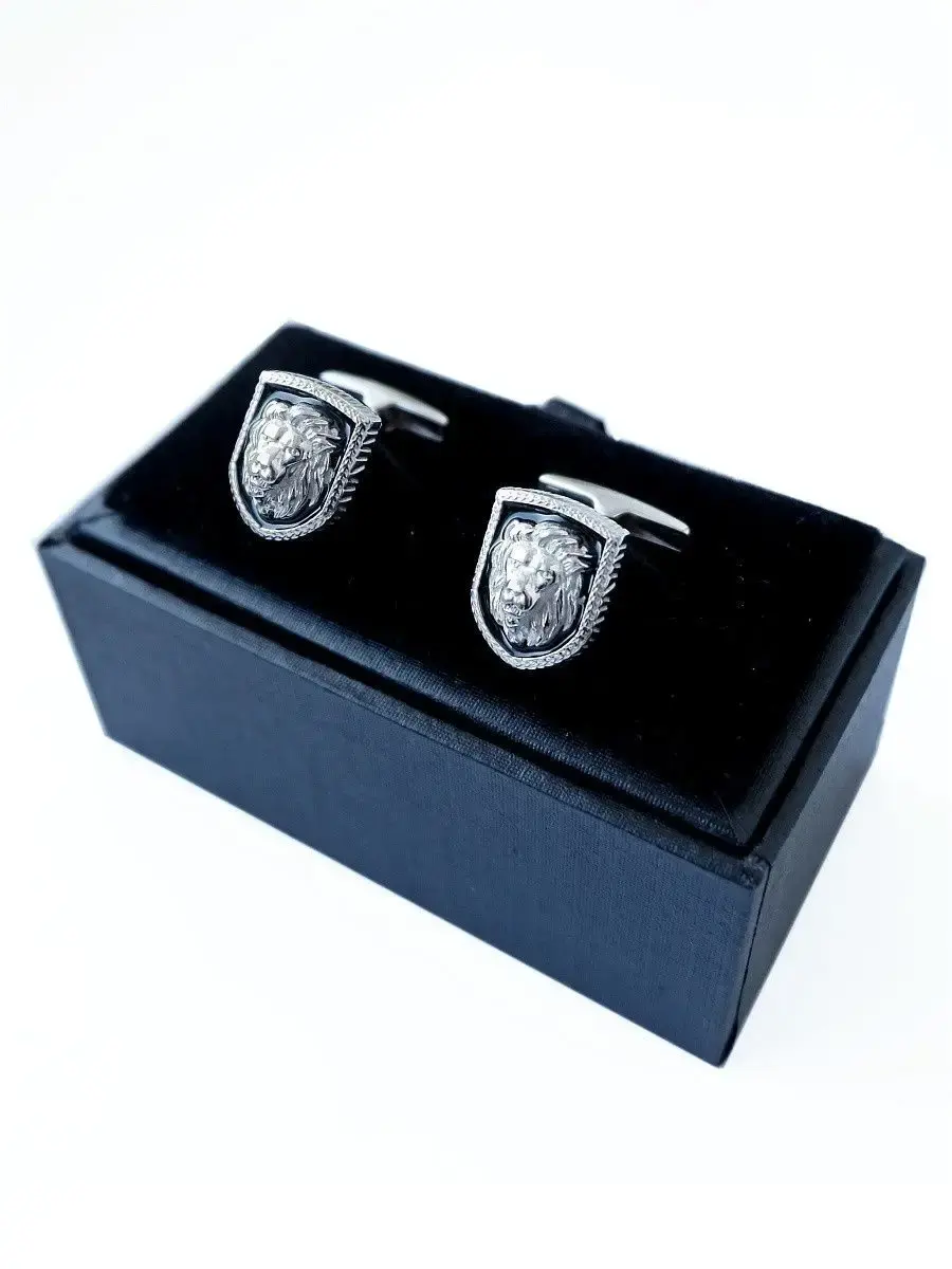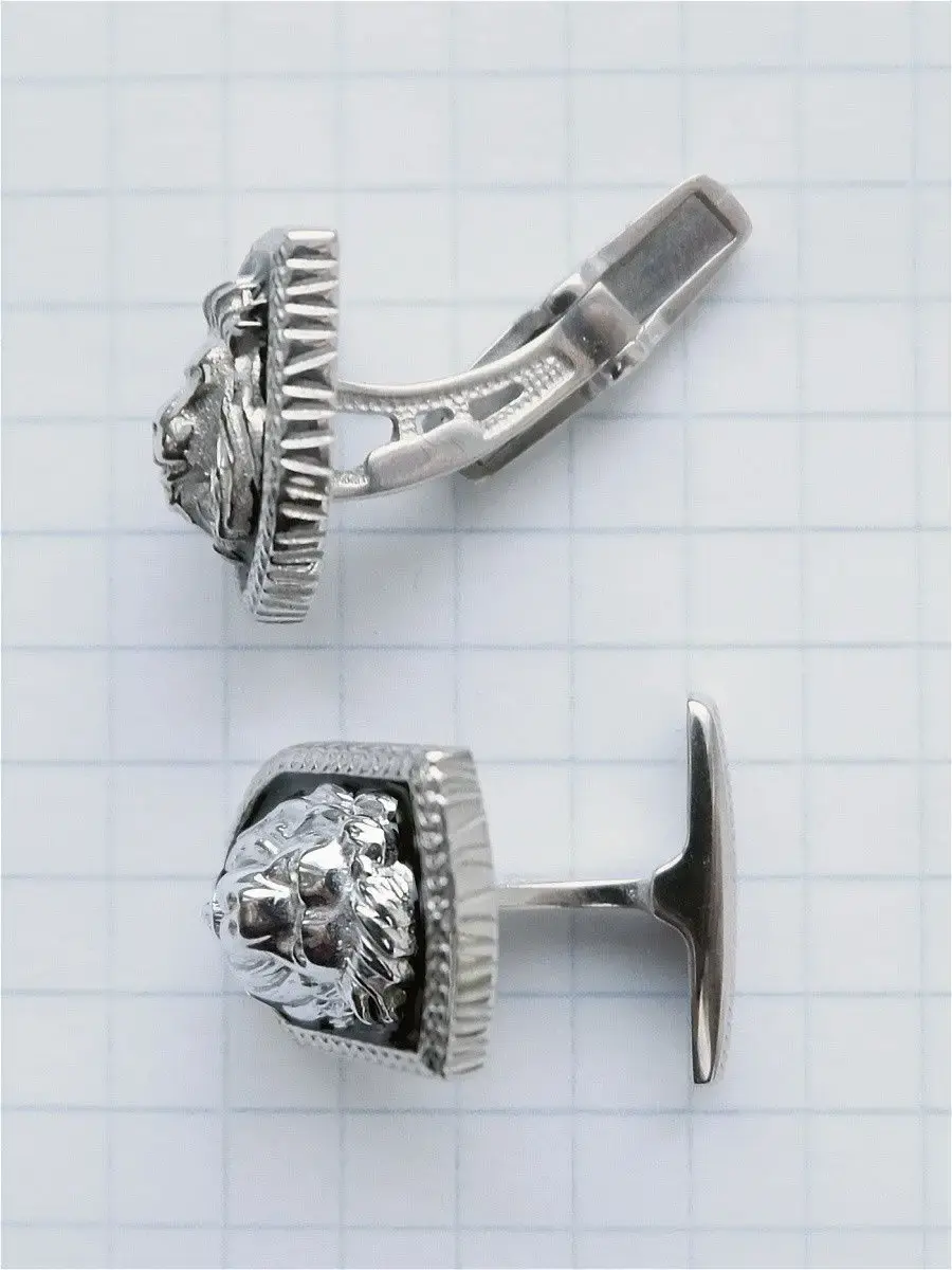 Стильные, брутальные, рельефные запонки мужские из серебра 925 пробы с головой Льва подойдут каждому мужчине, а не только Львам по жизни (и по гороскопу). Средний вес в серебре: 8.92 грамма. Размер лицевой части; 14*18мм. Серебро 925 пробы, эмаль. Запонки имеют официальное клеймо Пробирной инспекции и клеймо производителя. Поставляются в футляре.