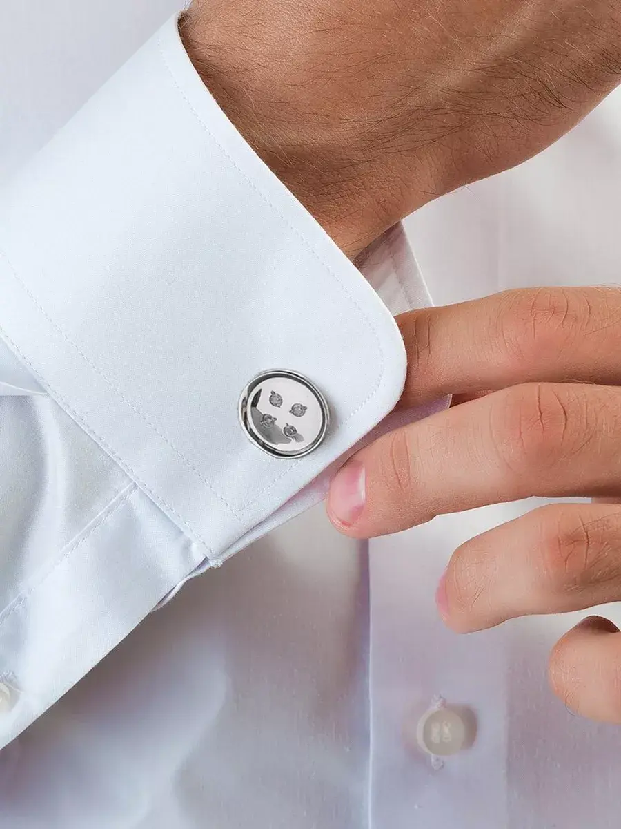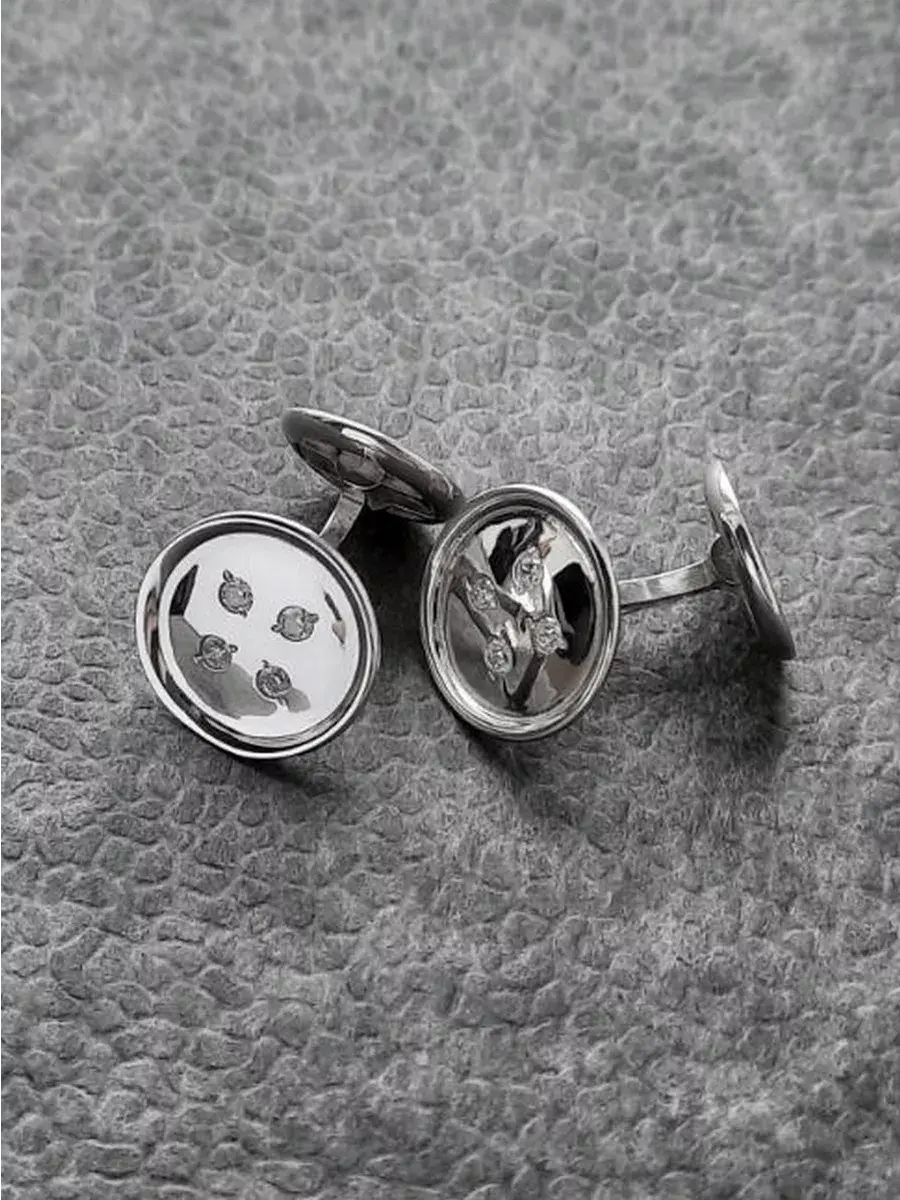 Серебряные запонки в форме пуговиц. Изготовлены из российского серебра 925 пробы и фианитов. Имеют все необходимые клейма и пробы соответствия. Диаметр лицевой пуговицы-15 мм, диаметр подвижной пуговицы-замка - 13 мм. Стильные запонки из серебра в форме пуговки помогут подчеркнуть Вашу индивидуальность, придадут изысканность при правильном сочетании с другими частями гардероба. Запонки могут стать необходимым элементом, позволяющим дополнить Ваш стиль. Аксессуары отлично подойдут для подарка родным и близким. Дизайнерские запонки отлично подойдут для повседневной носки, а также эффектно дополнят вечерний, праздничный или свадебный образ. Серебряные запонки идеально подходят для подарка любимому мужчине, мужу, сыну на День рождения, Новый год, 23 февраля, день всех влюбленных (14 февраля) или любой праздник, и повод. Значение веса на фото и в характеристиках являются примерными и могут отличаться от фактического. Запонки поставляются в подарочной упаковке - футляре.