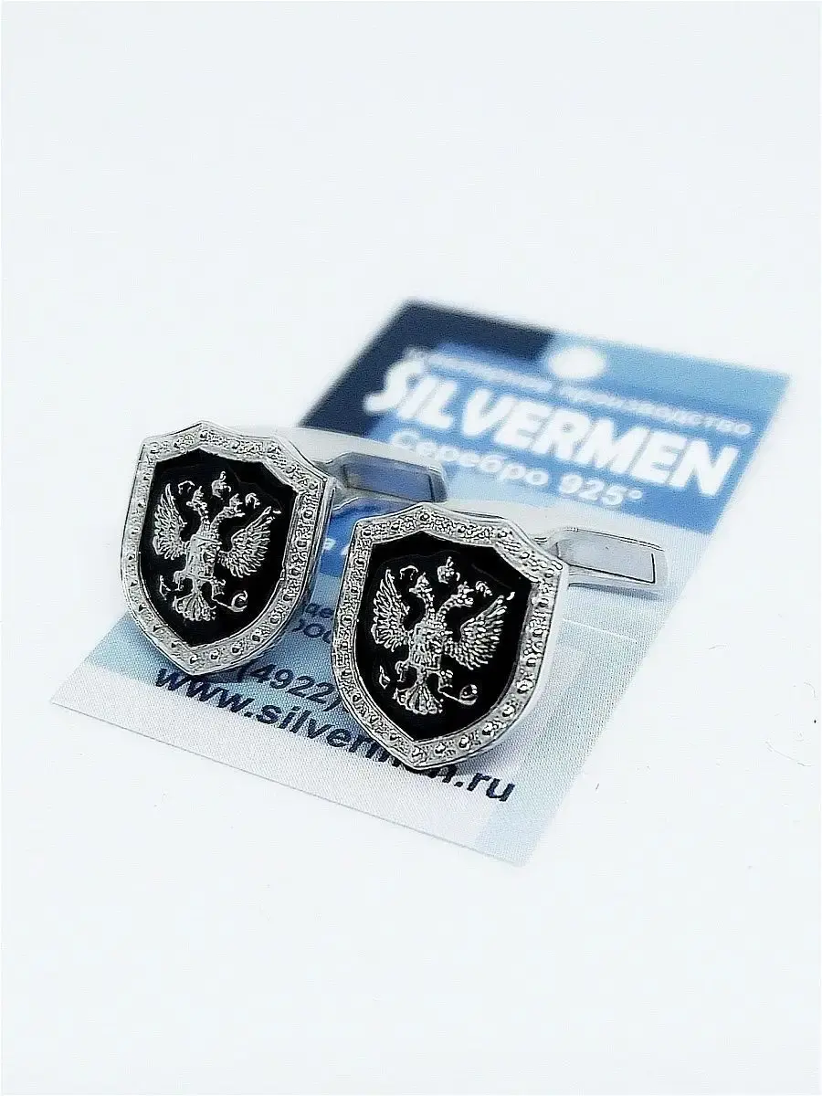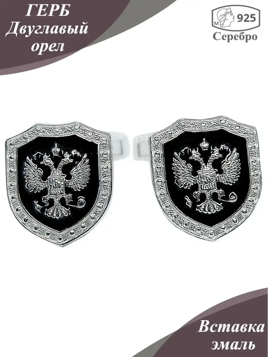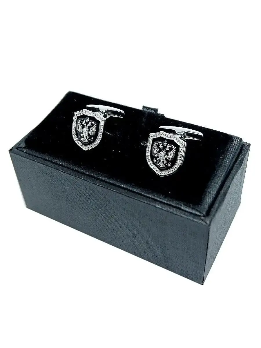 Исполненные в строгой манере ювелирные серебряные запонки, не помпезны, что позволяет использовать запонки с двуглавым орлом для ежедневного ношения. Такие запонки отлично подойдут для подарка людям, которые носят запонки исключительно в деловой обстановке и состоят на государственной службе: ФСБ, МВД, МИД и т.п. Эти запонки из серебра 925 пробы будут идеальным подарком для судьи, прокурора, юридического советника, депутатов разных уровней власти. При этом Вам не придется искать под них красивый футляр - запонки продаются уже в упаковке, которую не стыдно преподнести. Запонки не крупные. Средний вес запонок: 6 грамм. Размер лицевой части запонок 13х15мм. Запонки с двуглавым орлом изготовлены из серебра 925 пробы. Вставка: эмаль
